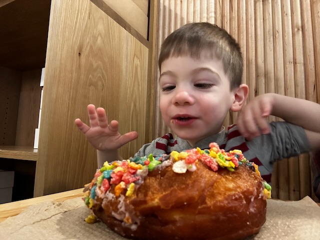 We spent the weekend getting into the Christmas spirit! On Saturday, we headed down to the Christmas tree farm with Grandma and Grandpa to pick out the perfect tree. We had a blast exploring the farm, running from tree to tree, and of course, we couldn’t leave without grabbing some warm, delicious cider doughnuts before heading home.